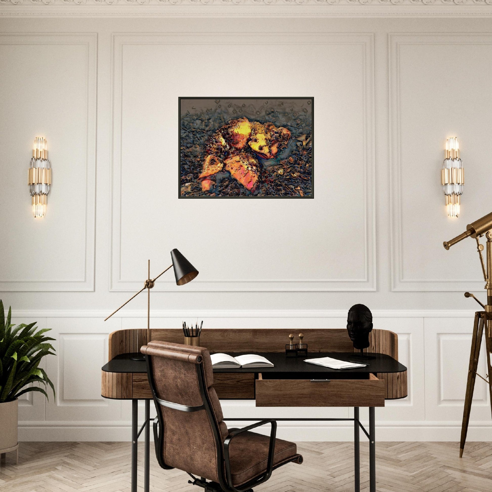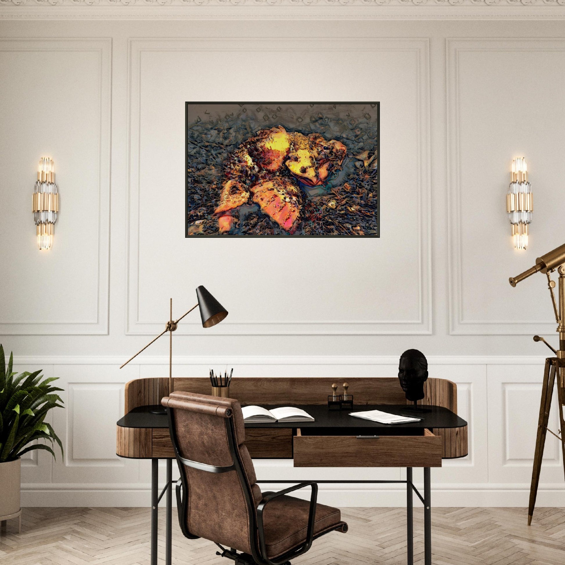 Our durable and sleek aluminum frame stands out with a polished finish. The poster is made on our master's edition, archival museum-quality paper. It is off-white, uncoated, and the superior choice for art enthusiasts who appreciate world-class quality to enjoy artworks most luxuriously.